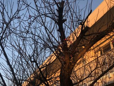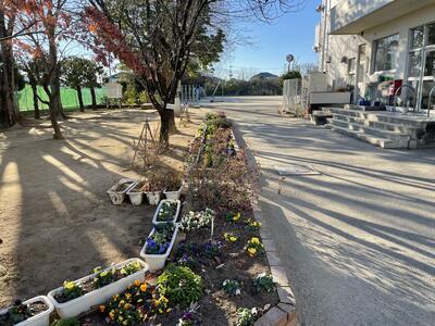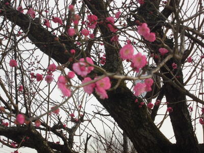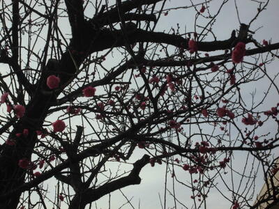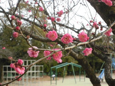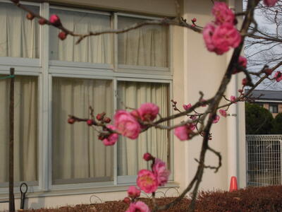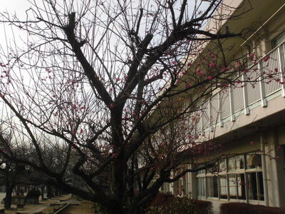 ↓ 校庭の梅の木が小さな花を咲かせました。