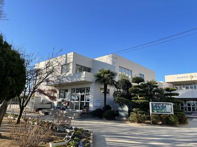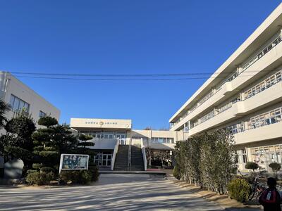 冬休み2日目の学校です。きれいに晴れ渡った空が広がっています。