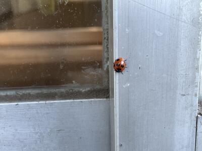 学校でテントウムシを見つけました。真冬でも、小さな命が息づいています。
