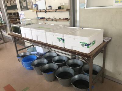 冬休みの学校でも、ホタルの幼虫の世話をおこなっています。