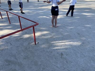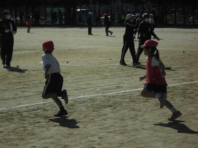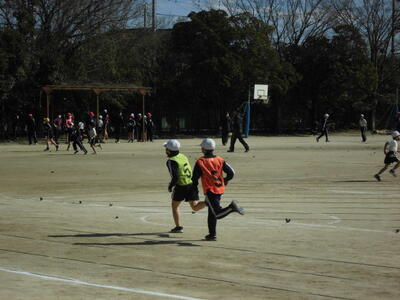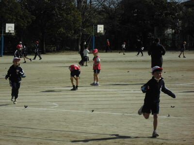 朝のさわやかタイム(全校での運動の時間)、今日も子供たちは頑張っています。