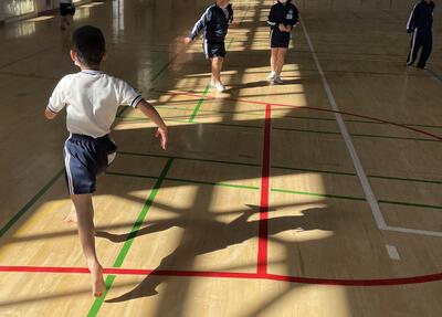 ↑ 冬でも、はだしで体育館を駆ける小渕っ子。 (※写真は先日のものです。)