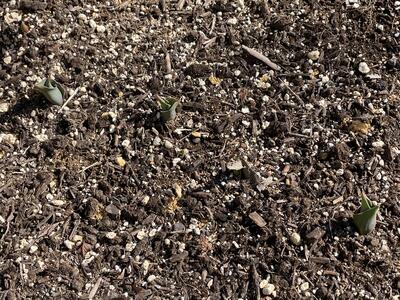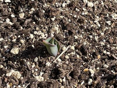 12月に植えたチューリップの球根から芽が出てきました。まだ寒い日が続きますが、春が近づいてきています。
