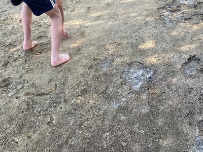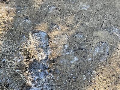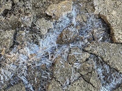 少し寒い朝です。校庭の土のやわらかいところや日陰では、霜柱が立っています。