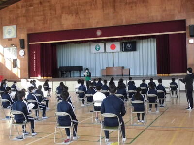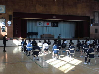 今年の卒業式は、体育館でも密を避けるため、来賓や在校生の参加は無く、卒業生と教職員と卒業生保護者の方(お一人)という形でおこないます。式場では、卒業生も、じゅうぶん間隔を空けて座ります。