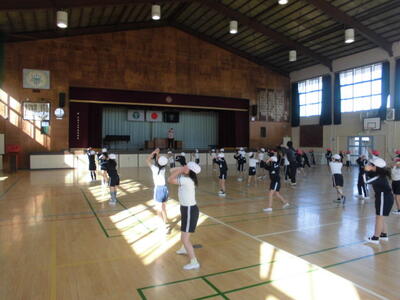 3月の「6年生を送る会」に向けて、各学年の取組が始まっています。今日の一時間目は、体育館で2年生が発表するダンスの練習に励みました。