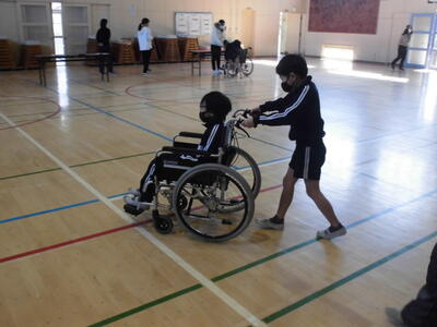 本日は、4年生の福祉体験学習として、車イスの体験をおこないました。