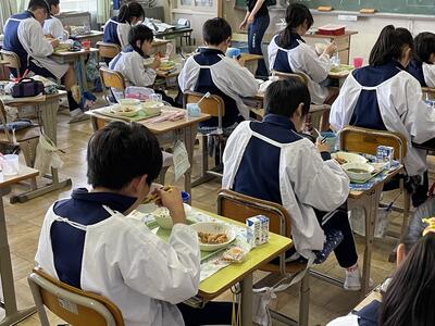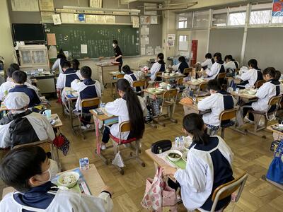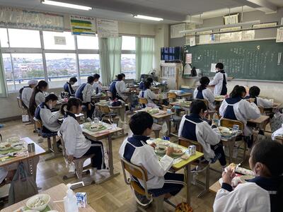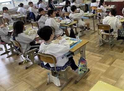 今学期の給食は、本日で終了です。今年度はコロナ禍にあって、給食もグループを作ったりせず、各自で前を向いて、会話しないで食べます。それでも、子供たちは給食の時間を楽しみにしています。