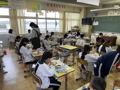 ↓ 六年生にとっては小学校最後の給食でした。