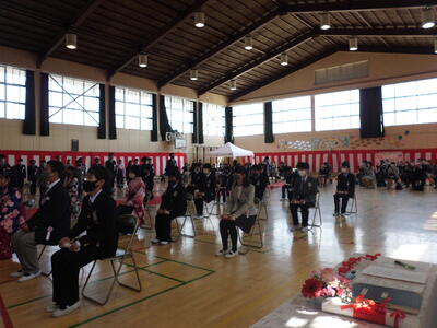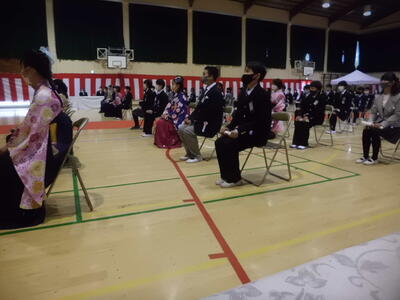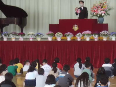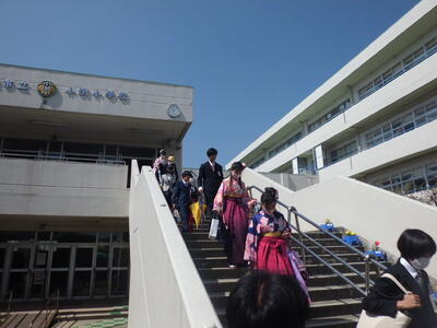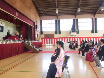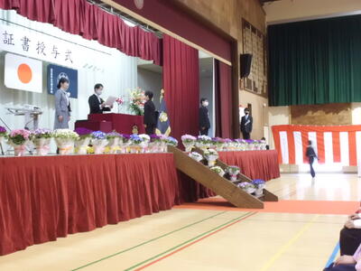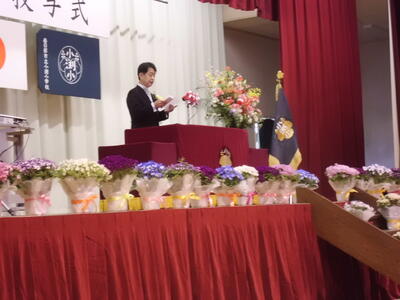 ( ↓ 校長先生の式辞、教育委員会からのお祝いの言葉です。)