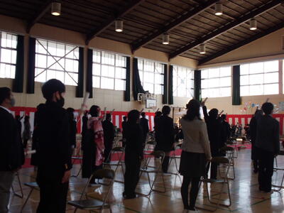 ( ↓ 最後の校歌です。マスクをつけたままですが、一生懸命に歌いました。)