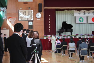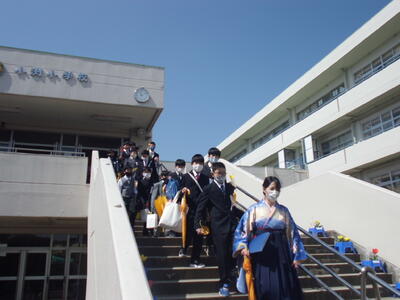 また、保護者の皆様、あらためましてお子さまのご卒業おめでとうございます。また、本日の式ではコロナ禍の中、学校の感染症対策にもご理解、ご協力いただき誠にありがとうございました。