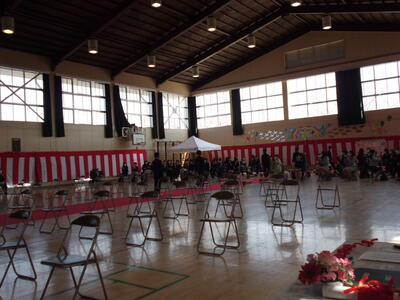 ( ↓ 式場が完成しました。明日の卒業式を待つばかりです。)