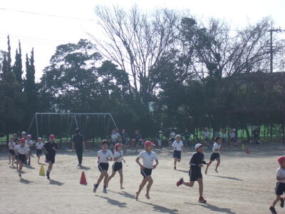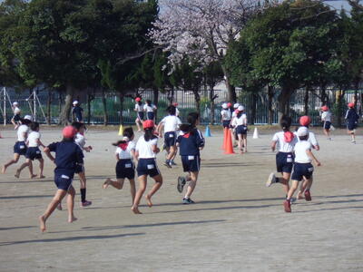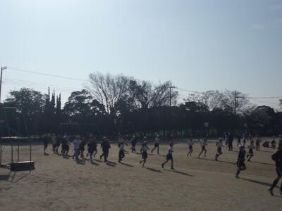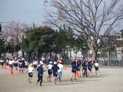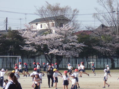 昨日の卒業式を終え6年生が小渕小を巣立ち、今日は1~5年生での学校生活です。朝は、登校後の一(いち)運動の時間です。子供たちが校庭に出て、元気に運動をしています。