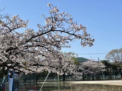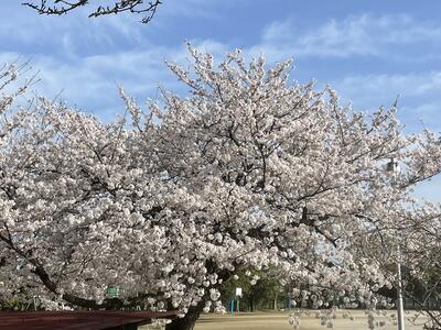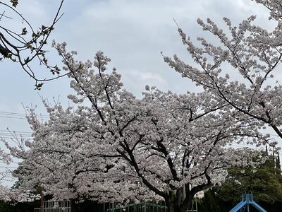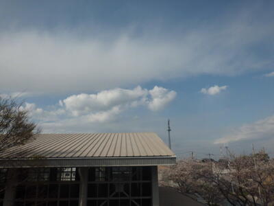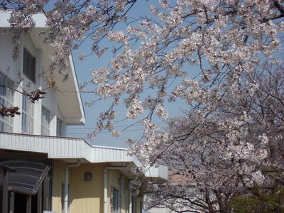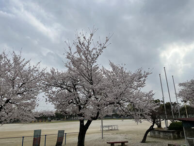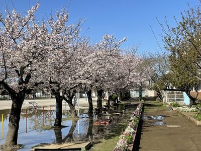 ( ↓ 午後になって、校庭の桜がますます咲いてきました。)