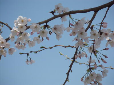 ( 午後になって、桜もいっそう咲いてきています。)