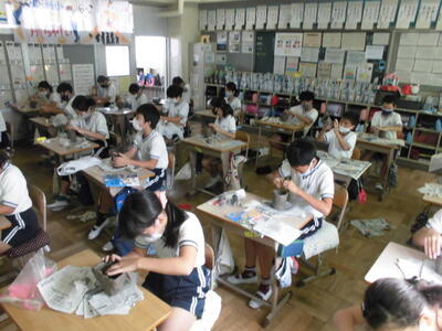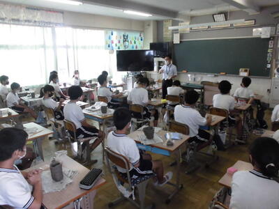 本日、6年生は外部から講師の方を招いて陶芸教室を行いました。それぞれが粘土をこねて、思い思いの器を作り上げました。