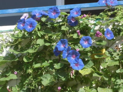 ( ↓ グリーンカーテンのリュウキュウアサガオ。)
