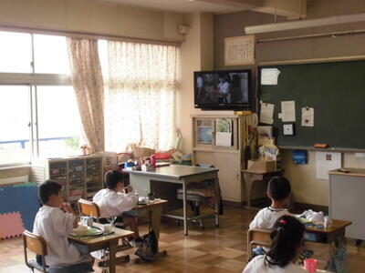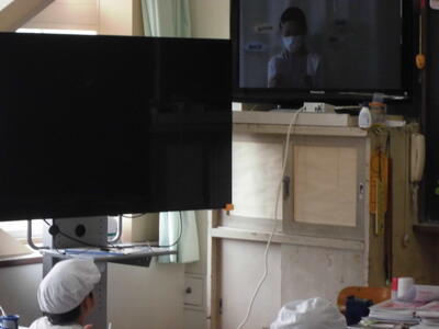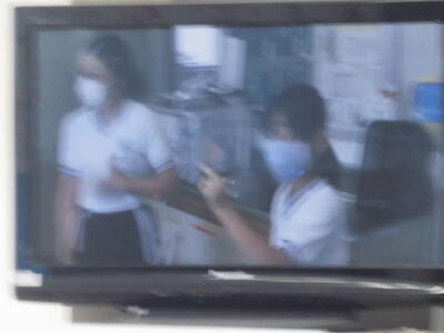 ( ↓ 事前に保健委員が作成したVTRがテレビから流れています。)