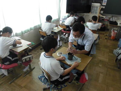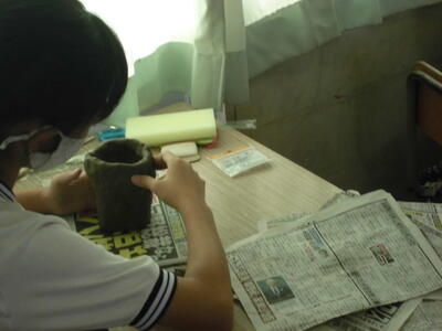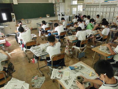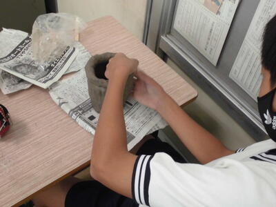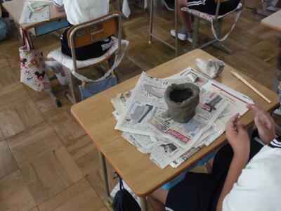 本日、6年生は外部から講師の方を招いて陶芸教室を行いました。それぞれが粘土をこねて、思い思いの器を作り上げました。