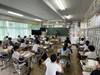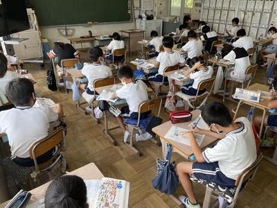 今回の児童集会は、感染症対策に工夫して、体育館には集まらずに教室の自分の席で、声を出さずに全員が取り組めるゲームを行いました。どのクラスも、楽しそうに参加していました。