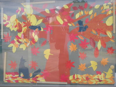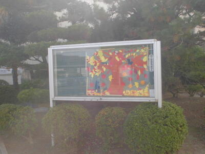 学校の正門前は、毎月、掲示委員さんが掲示物を作成してくれています。11月は運動会の掲示がありましたが、運動会が終わったので、深まる秋をイメージした掲示に変わりました。