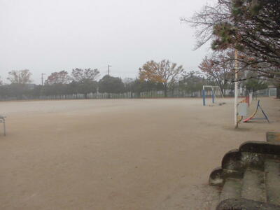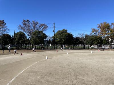 ( ↓ 持久走大会のコースとなる学校の校庭。)