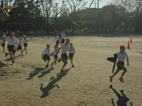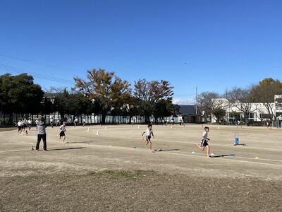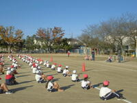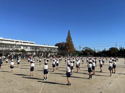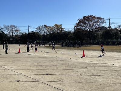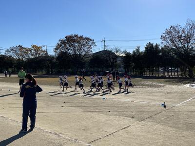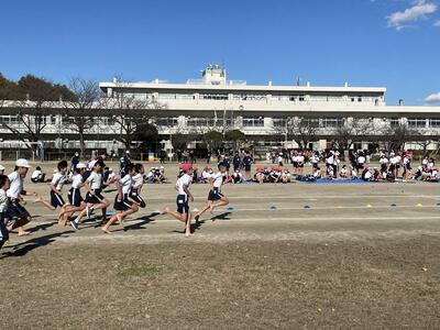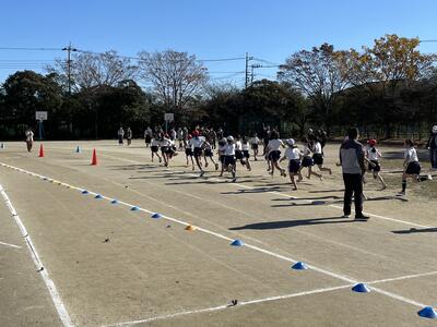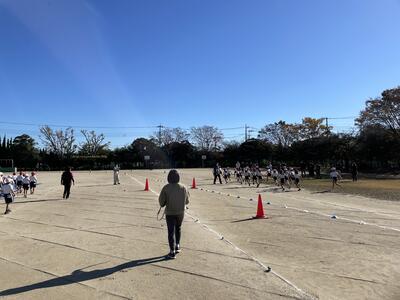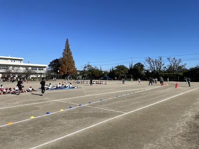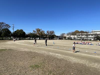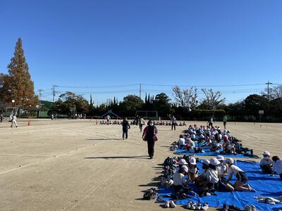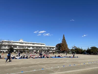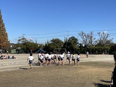 このあと、9:40~10:25一・二年生、 10:45~11:30三・四年生、 11:40~12:25五・六年生の競技となる予定です。