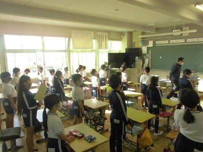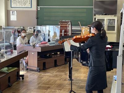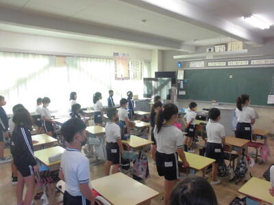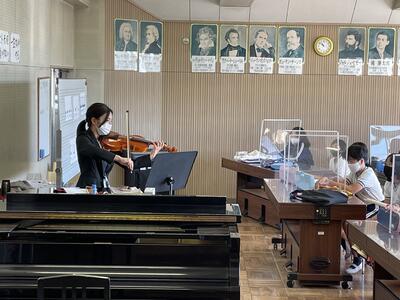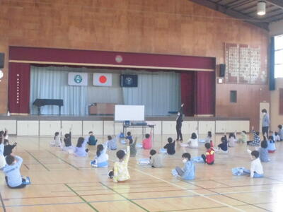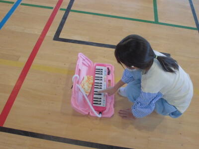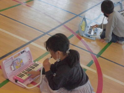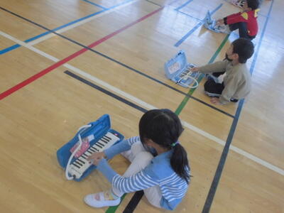 今日は、外部から講師の方をお招きして一年生の鍵盤ハーモニカ教室でした。(密を避けるため体育館で児童同士の間隔をあけて実施しました。)