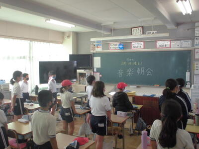 今日の朝は音楽朝会でした。密を避けるため、放送でおこないました。子供たちは、今月の歌『ありがとうの花』をしれぞれの教室で、(感染症に気をつけマスク着用で間隔をあけて)歌いました。