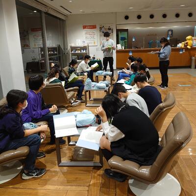 部屋のメンバーの体温と健康状態を記録した健康観察カードを、保健の先生に提出します。