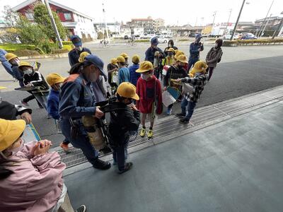 ( ↓ 最後は一斉下校で、先生や地域の方に見守られながらの下校となりました。)
