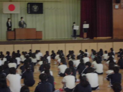 ( ↓ 市内読書感想文コンクールの表彰です。特選と各学年の金賞の表彰がありました。)