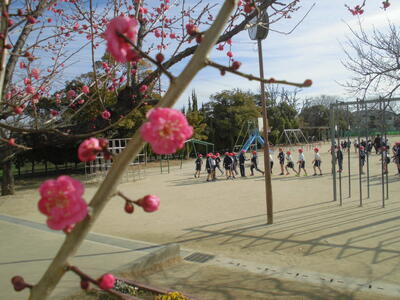 梅の香がただよう校庭では、今日も子供たちが元気に活動しています。