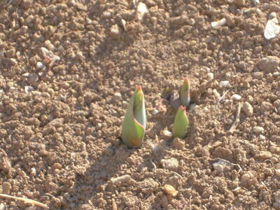 昨年植えた球根の芽が出てきました。寒い日が続きますが、春も近づいてきています。