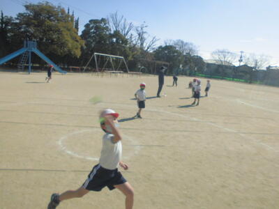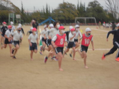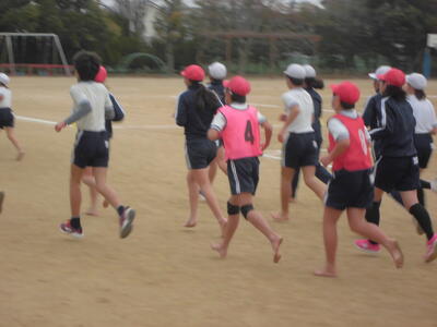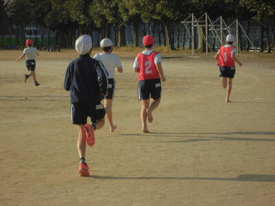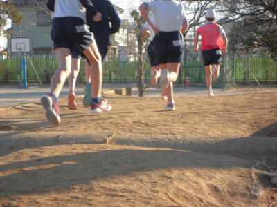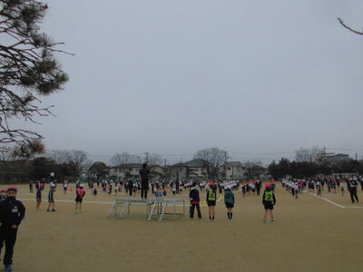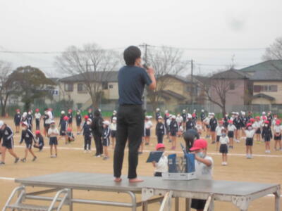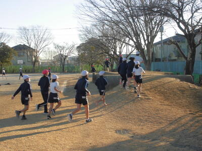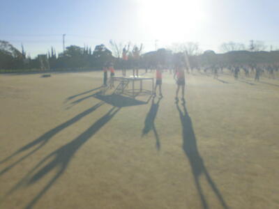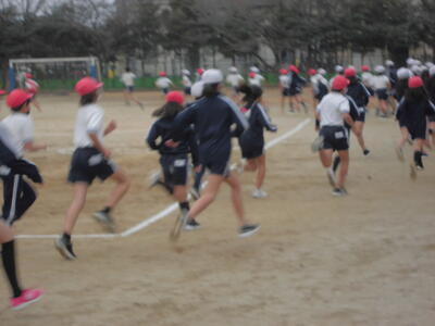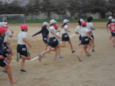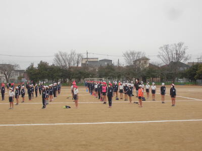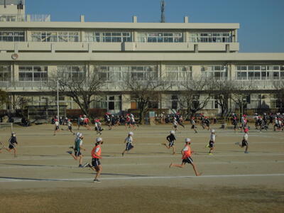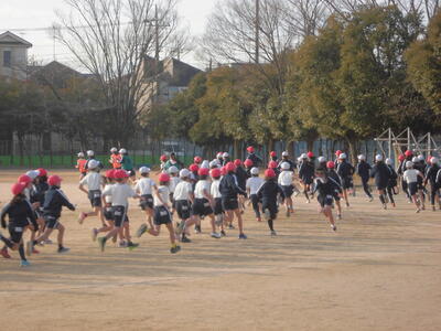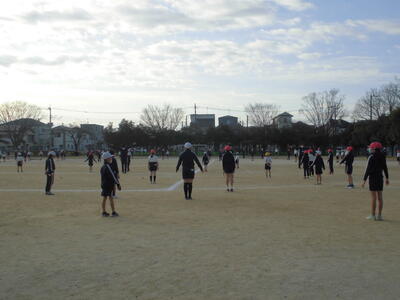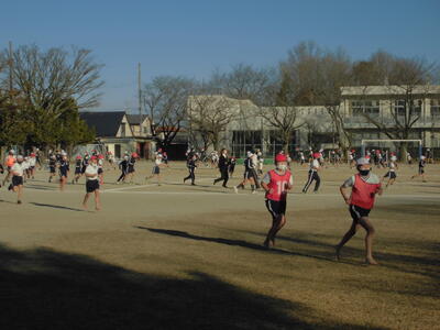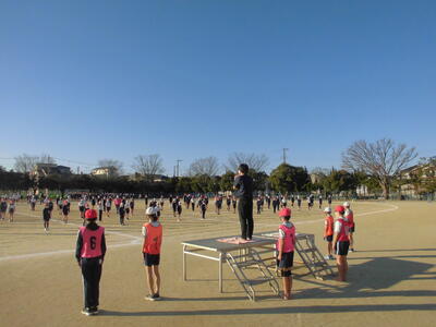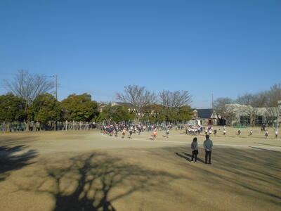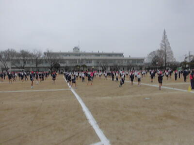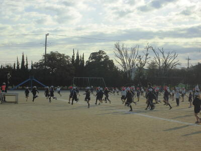 朝のさわやかタイム、全校で運動する時間です。冷たい空気の中でも子供たちの元気な姿が見られます。