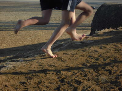 ( ↓ はだしで走る子もいます。)
