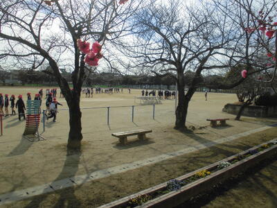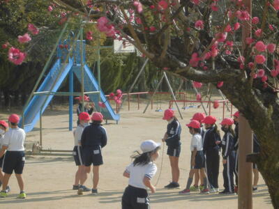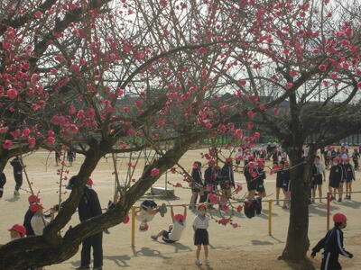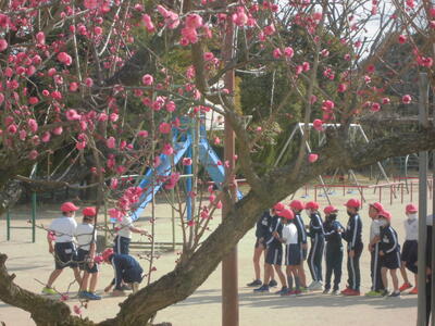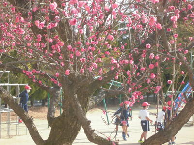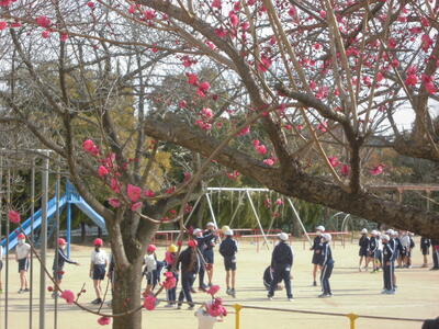 梅の香がただよう校庭では、今日も子供たちが元気に活動しています。