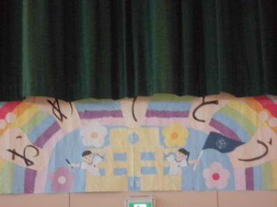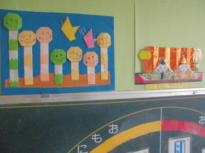 ( ↓ 二年生が、壁の飾りつけをきれいにおこなってくれました。)