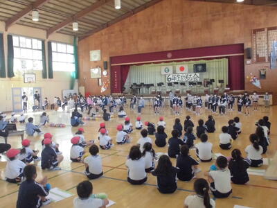 式の後に、本をたくさん読んだ「本いっぱい」、校庭をたくさん走った「汗いっぱい」の表彰がありました。