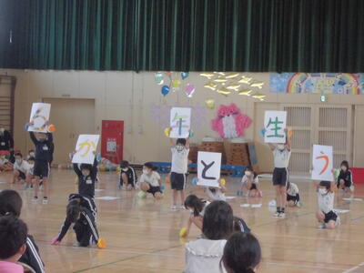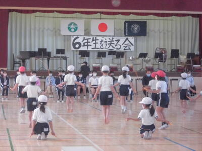 先週の「6年生を送る会」では、5年生は児童がそろわずに、発表を延期としました。今日は、5年生が、6年生にむけて、卒業を祝う発表をおこないました。