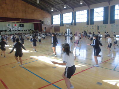 今日の朝は、さわやかタイム。全校で運動する時間です。