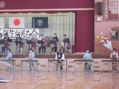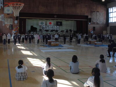 6年生が退場しました。コロナ禍でも、各学年が工夫して、子供たちの手作りの会が成功して、卒業生にとっても在校生にとっても思い出となる会になりました。