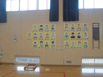 ( ↓ 4年生が、6年生一人一人のイラストを作成してくれました。)