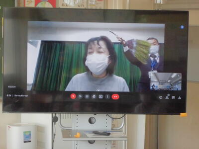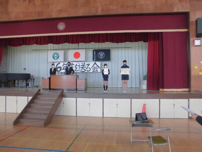 感染症対策のため、体育館では代表者のみが賞状を受け取ることとして、他の人は教室で表彰されたり見守ったりして、リモートでおこないました。