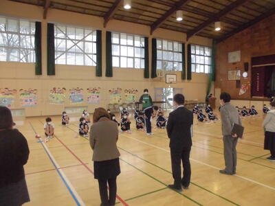 ( 続いて運動の発表です。縄跳びでできるようになった技を披露します。)