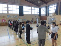 (別れの言葉の練習です。当日は式に参加しない5年生が本日は後ろで見守っています。