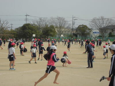 木曜日の昼は青空タイム、ロング昼休みです。今日の青空タイムは「仲よし集会」、1~6年生が縦割り集団で楽しく遊びます。 このメンバーで、遊ぶのは今年度最後の仲よし集会となりました。