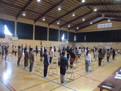 (一人一人が、しっかりした態度で予行に参加しています。)