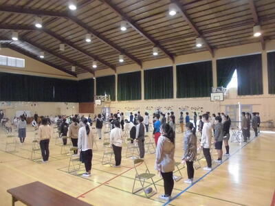 本日はR3年度の修了式でした。体育館で、密を避けながら、マスク着用で実施しました。